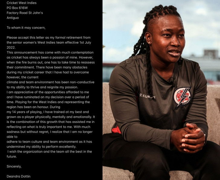 She also posted a long statement saying, "Please accept this letter as my formal retirement from the senior women's West Indies team effective 1st July 2022. This announcement has come with much contemplation as cricket has always been a passion of mine. However, when the fire burns out, one has to take time to reassess their commitment," the post read.