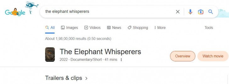 Online searches for "The Elephant Whisperers" on Google skyrocketed by a whopping 8,164 per cent worldwide after winning the award for the Best Documentary Short Film at the 95th Academy Awards, a report showed on Friday.