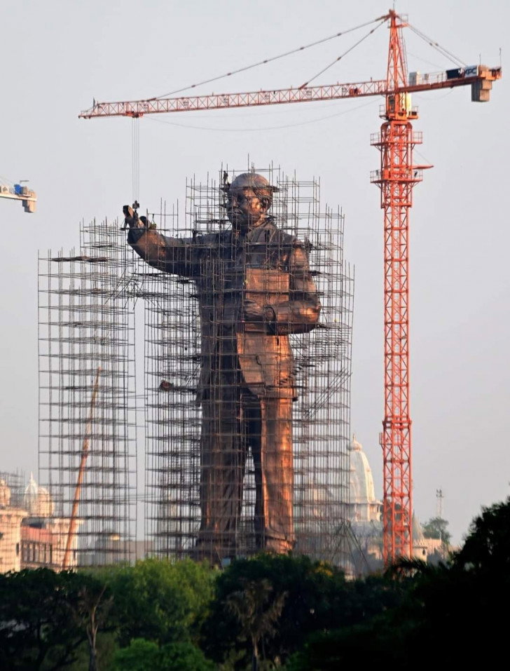 As part of the unveiling, a huge crane will be used to remove the curtain on the statue and garland it with a giant garland made of roses, white chrysanthemums and betel leaves.