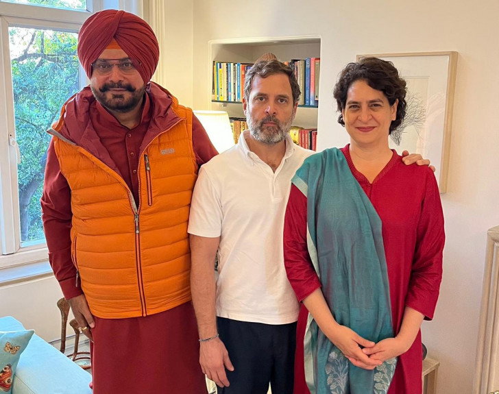 This was Sidhu's first meeting with Rahul and Priyanka Vadra after his release from the Patiala jail.
