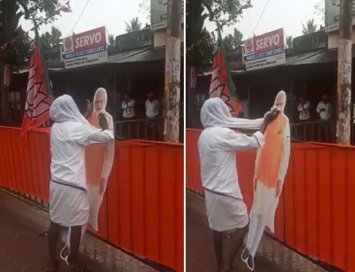 A video showing a farmer wiping Prime Minister Narendra Modi's cutout with his towel has gone viral on social media.