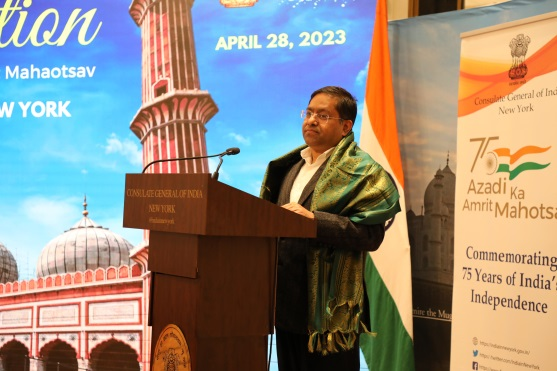 New York, April 28, 2023 - The Consulate General of India in New York and the Indian American Muslims of USA celebrated Eid al-Fitr with great enthusiasm and fervor. The event was attended by elected officials and other community members who extended their greetings and met with members of the Muslim community. The event started with a Quran recitation by a 13-year-old student, Soha Naz, who also presented a presentation about the Ramadan month and Festival.