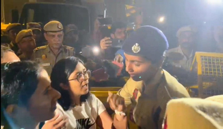 Though the police is yet to confirm her detention, a video doing rounds on social media showed that women police personnel forcefully taking the DCW chief in a police van from the protest site.