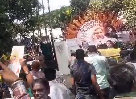 Meanwhile, a large number of fans and supporters of Siddaramaiah have gathered near his residence and distributed sweets to the public. The fans poured milk on the portrait of Siddaramaiah.