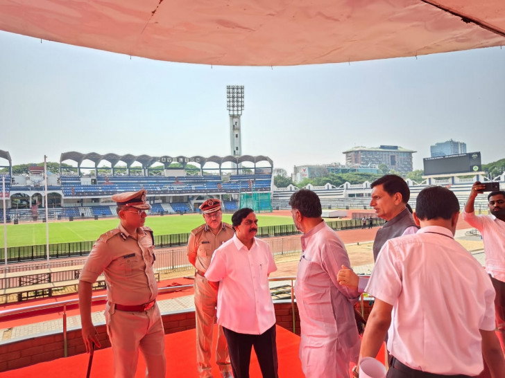 Meanwhile, Deputy CM designate and Karnataka Congress President D.K. Shivakumar along with other leaders paid a visit to the Kanteerava Indoor Stadium and inspected the preparations.