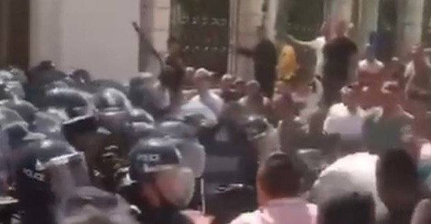 Videos of Saturday's protests showed lines of police blocking entry to the mosque, and group of men attempting to force their way in with some throwing rocks at police.