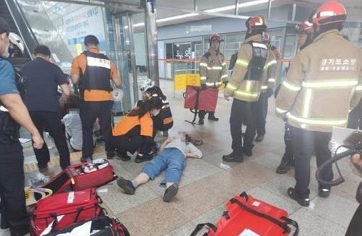 The accident occurred at around 8.20 a.m. when the upwards escalator leading to exit 2 of Sunae Station on the Bundang Line reversed suddenly and went backward for several seconds, Yonhap News Agency quoted police and fire authorities as saying.