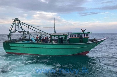 A Sri Lankan Naval vessel that was passing through the area found the boat inside Sri Lankan waters and took the fishermen for questioning at the Kankensanturai Naval base for questioning.