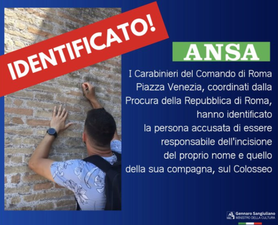 But in a tweet on Thursday night, Sangiuliano said that the Carabinieri had “identified the person presumed to be responsible for the uncivilised and absurd act committed at the Colosseumâ€.