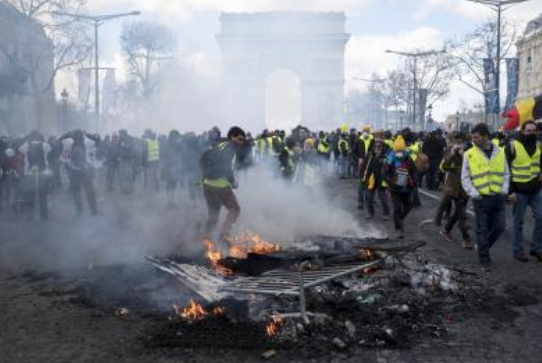 In a less chic neighbourhood of northern Paris, protesters set off firecrackers and lit barricades on fire as police shot back with tear gas and stun grenades.