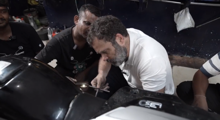 In the video, Rahul Gandhi can be seen visiting bike mechanic shops.