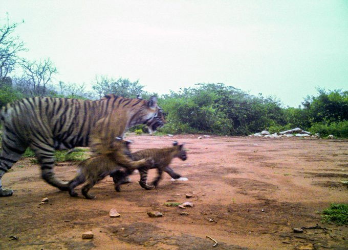 The trio was captured on camera in the buffer zone of the park near Alwar on July 6.