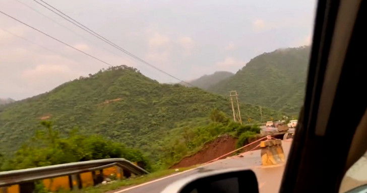 A large portion of the highway was caved in near Chakkimod in Solan district.