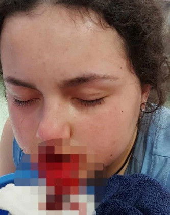 She was rushed to hospital with severe facial injuries and is still in hospital.