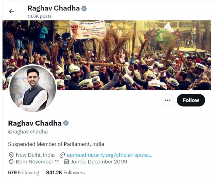 Aam Aadmi Party (AAP) Rajya Sabha MP Raghav Chadha on Saturday changed his bio on X (formerly Twitter) to 'suspended MP'.