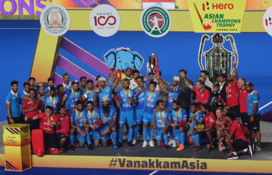 “Congratulations to #TeamIndia on clinching their 4th#AsianChampionsTrophy title with a fighting comeback!. A remarkable feat that showcases their dedication and prowess. #Chennai, known for its sports-loving spirit, has been a splendid host. Grateful to Honble @ianuraghthakur for gracing the trophy distribution ceremony. Commendable efforts by Hon’ble @UdhayStalin,@SportsTN_,@Atulyamisraias,@jmeghanathreddy, and @TheHockeyIndia to have successfully organized this grand international event. I am pleased to announce a reward of 1,10,00,000 INR to the Indian team for their fantastic victory. @FIH_Hockey#VanakkamAsia #GoalPodu #HockeyisBack #HACT2023 #BattleOnTheTurf,†the Chief Minister posted on X.