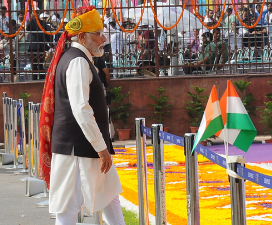 PM Modi wears bandhani print Rajasthani headgear for I-Day celebrations