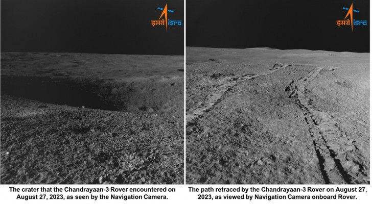 In a post on social media platform X on Monday, Indian Space Research Organisation (ISRO) said: “On August 27, 2023, the Rover came across a 4-meter diameter crater positioned 3 meters ahead of its location. The Rover was commanded to retrace the path. It’s now safely heading on a new path.â€