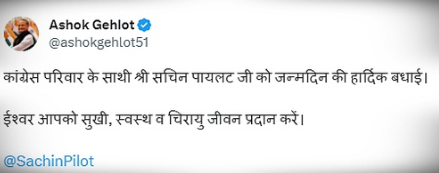 Raj CM Gehlot wishes his ex-deputy Pilot on his birthday