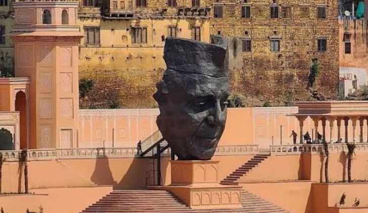 Next, the world's largest gunmetal mask of Pandit Jawaharlal Nehru has been installed at Jawahar Ghat. The face mask is 12 meters high and three meters wide. Nehru had inaugurated the Kota Barrage in 1960. With this face mask you will be able to see the western end of the riverfront.