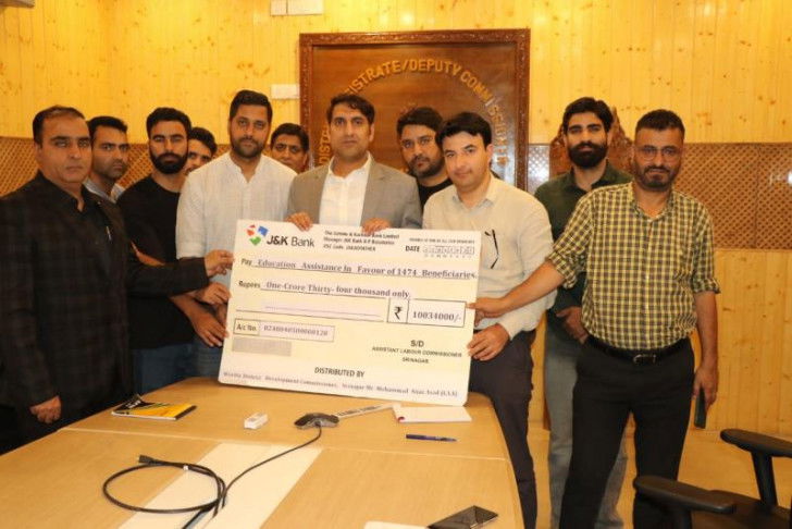 Srinagar's Deputy Commissioner (DC) Mohammad Aijaz Asad on Friday released an amount of over Rs 1 crore in favour of the wards of 1,474 registered construction workers on account of Education Assistance under J&K Building and Other Construction Workers Welfare Board (JKBOCWWB).