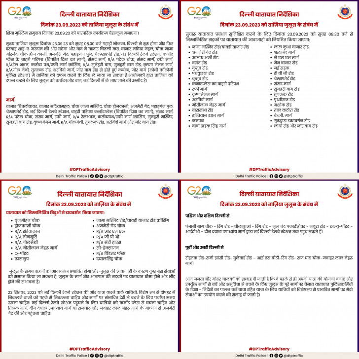 The traffic advisory further stated that routes have been regulated on Jama Masjid Road/Chawri Bazar Road, Ajmeri Gate Road, Asaf Ali Road, JLN Marg,