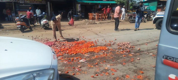 The incident took place when Ajit Pawar was proceeding from Ojhar Airport to Dindori, and his fleet of vehicles was blocked by the irate farmers who raised slogans against the state government, and targeted the cars with onions and tomatoes.