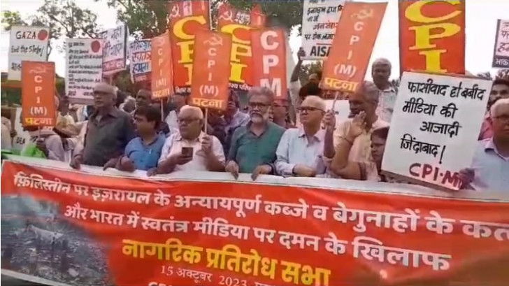 Hundreds of CPI-ML workers and supporters, under the leadership of party General Secretary Dipankar Bhattacharya, came out on the streets of Patna on Sunday in support of Palestine and to protest against Israel.