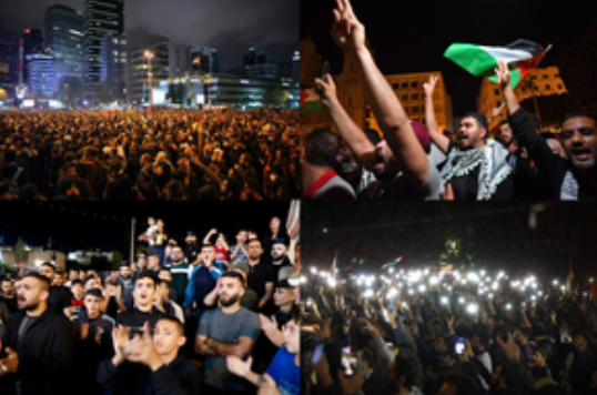 Protests also erupted in Lebanon, where Hezbollah has traded fire with Israeli forces at the border.