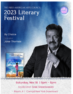 Mr. Jose Thomas, a true pioneer in the seafood industry and prominent figure in various sectors, will present his remarkable life story in a captivating book launch at the prestigious Indo-American Arts Council’s 2023 Literary Festival. The event is scheduled for Saturday, November 18th, at 5:00 PM, and will take place at the Conrad New York Downtown. The book “By Choice†is published by Harper Collins India. Attendees will receive copies flown in from India and can get them autographed by the author. Mr. Thomas will also receive the IAAC 2023 Trailblazer Award at the IAAC Annual Gala, which will be held on Sunday, November 19th, starting at 6:00 PM at the same venue.