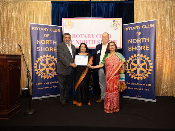 South. She is also Stewardship Chair of District 7255. She had the vision of starting a new club which came to fruition on October 29,2023. She has been a great mentor and guide to all of us throughout the process.At this occasion Indian Consul General Mr. Randhir Jaiswal was conferred upon the honorary membership of Rotary Club of North Shore. The Honorable Consul general was not able to attend. He will be presented with the plaque soon.
