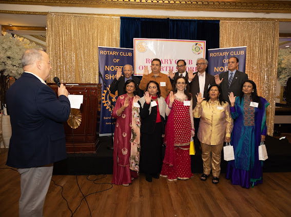 It was a special evening at Antuns’ on October 29,2023. The Installation of Newly formed Rotary Charter the Rotary club of North Shore, which was initiated by the Rotary Club of Hicksville was held at the Antun’s, LI. Rotary District 7255, District Governor Tom Crowley officiated the Oath ceremony of the Rotary Club of North Shore President Dr. Mamta Shaha