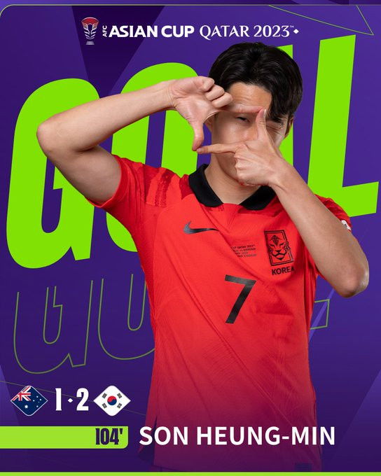Captain Son Heung-min won a stoppage-time penalty and scored an extra-time free-kick on Friday night to propel South Korea to the AFC Asian Cup semifinals following a 2-1 comeback victory over Australia.