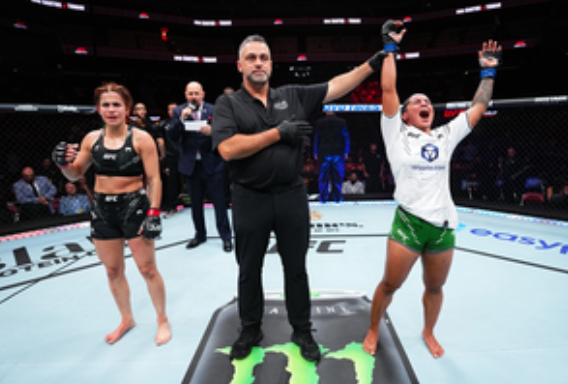 "I had goosebumps. Inside (the Octagon), there was no pressure, I just thought, 'I have to win'. I took two or three punches, but I'm OK. I'm going to improve myself and I'm going all the way up," said Puja following her historic victory.