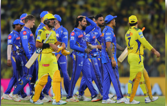 Mumbai Indians 155/9 in 20 overs (Tilak Varma 31, Suryakumar Yadav 29; Noor Ahmad 4-18, Khaleel Ahmed 3-29) lost to Chennai Super Kings 158/6 in 19.1 overs (Rachin Ravindra 65 not out, Ruturaj Gaikwad 53; Vignesh Puthur 3-32, Deepak Chahar 1-18) by four wickets