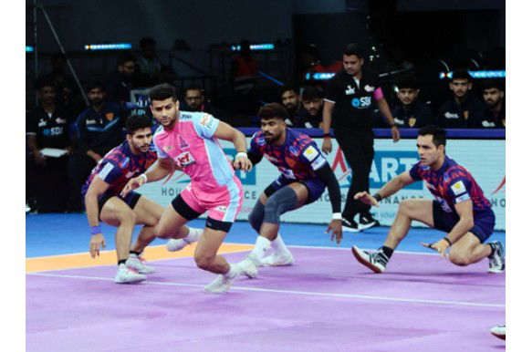 A super tackle by Aryan Kumar gave Jaipur Pink Panthers an opportunity with only a point separating the two sides. In the end, Neeraj Narwal came in clutch with a tackle Neeraj Narwal on Ali Samadi and then wrapped up proceedings with the final raid of the game, ensuring the table-toppers complete the double over their opponents with a 29-26 win.
