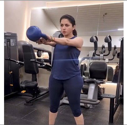 It also targets your core. Correct breathing while you do the hipthrust is a must. Your arms do not take the weight, it is the dynamic movement of the hip thrusts that helps you to swing the kettle bell," Bhagyashree captioned the post.