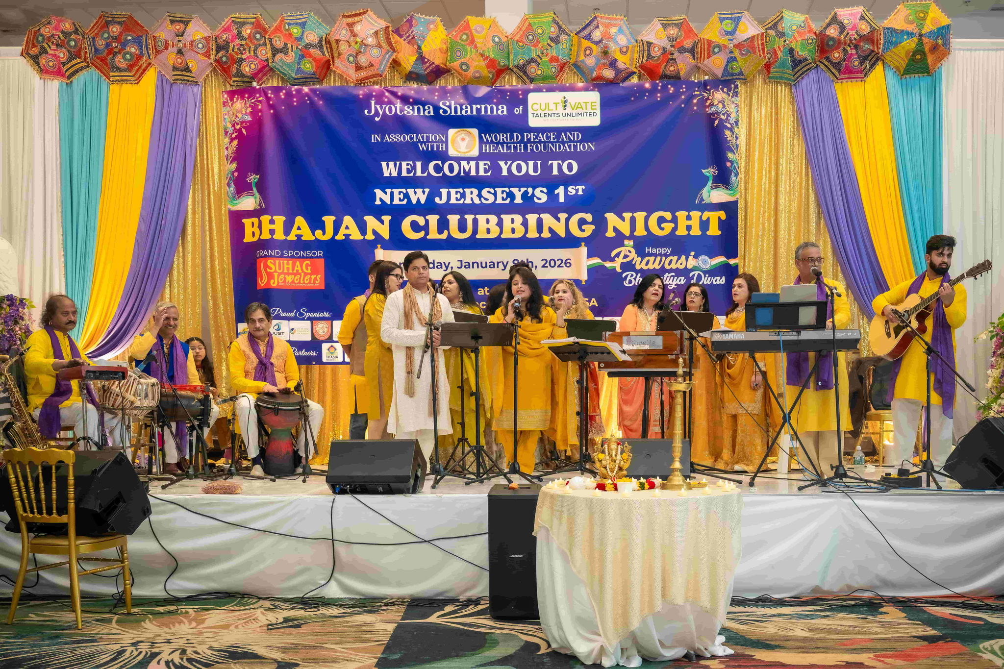 This very sought after Bhajan Clubbing Night was organized in association with World Peace and Health Foundation, A non-profit led by Founder trustees Neeraj & Pramod Bhagat. New Jersey's 1st ever Bhajan Clubbing Night's concept was solely curated by Jyotsna Sharma who is not only the Co Founder of Cultivate Talents Unlimited LLC, An NJ based Women Minority Business Enterprise, but also an IT Professional and popular freelance TV Producer, Anchor, journalist & correspondent with South Asian media in USA. She took the lead to start the Bhajan Clubbing after being inspired from the Gen Z bhajan clubbing fever in Indian Metros. Before the launch of the event she did a survey on the social media platform and got the feedback that Indian American people in the age group 15 to 65 showed interest to join such an event.This bhajan jamming spiritual & soulful 3 hours long musical extravaganza enthralled the audience in age group 15 to 75 who swayed to the bhajans being sung by 15 star singers & musicians of Cultivate Talents Unlimited who were selected through a talent hunt in the Tri-State. Also, a special All American Team of singers & musicians led by Kevin Kalpa Virksha & Pandit Krishna Das Sharma of New Jersey created magic by singing Hanuman Chlisa & devotional Chants in the glory of Lord Shiva & Radhe Krishna.