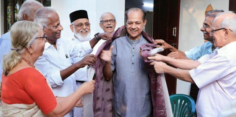 Renowned writer Prof. S. Sivadas, classmate Rev. Dr. K.M. George, and professors including Dr. George Cherian, Dr. Joseph Cherian, Dr. Mary Kuruvilla, Prof. Parvathy, Thomas Job, and Prof. John presented Andrew with a ceremonial shawl, signifying their respect and admiration.