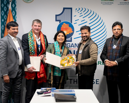 The delegation, including Minister Ponguleti Srinivasa Reddy, detailed Hyderabad's leading capabilities in aerospace, defence, bio-design, software, and pharma. Adding that the current focus of the government is promotion of electric vehicles and transition to renewable energy, they also explained about the various skilling initiatives being taken up through the newly launched Advanced Technology Centres, the Young India Skills University and the Young India Sports University.
