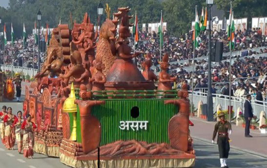 Assam’s tableau rolled down Kartavya Path in the national capital on Monday as part of the 77th Republic Day celebrations, showcasing the rich terracotta legacy of Asharikandi, a renowned craft village in Dhubri district.