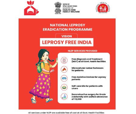 Under the NLEP, the government provides services such as free diagnosis and treatment (MDT) at all government health facilities, microcellular rubber footwears for patients, free assistive devices for leprosy patients, self-care kits for patients with ulcers, and reconstructive surgery for Grade 2 deformities with a welfare allowance of Rs 12,000.