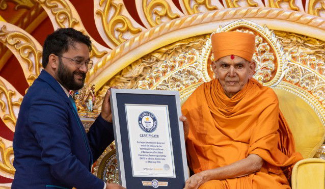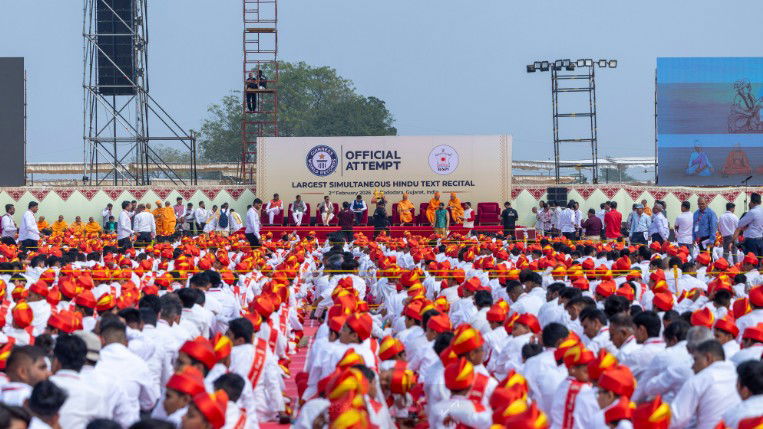 Swaminarayan Sanstha, took place on February 2, 2026, drawing more than 200,000 devotees from around the world. The event became the setting for a remarkable global achievement as BAPS set a Guinness World Record for the largest simultaneous Hindu text recital by children.
