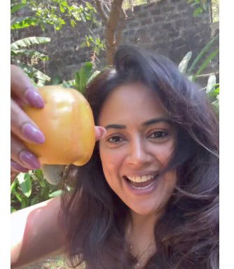 Taking to her social media account, Sameera posted a close-up of a ripe cashew fruit plucked straight from a tree in her garden. The actress was seen holding a golden-yellow cashew apple in her hand, and proudly showed the attached nut and the natural juices oozing from it after it had fallen from the tree.