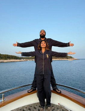 Taking to her Instagram, Shilpa uploaded a picture of herself standing with her husband on the edge of a boat with their arms stretched open, just like Jack and Rose did in the James Cameron directorial.