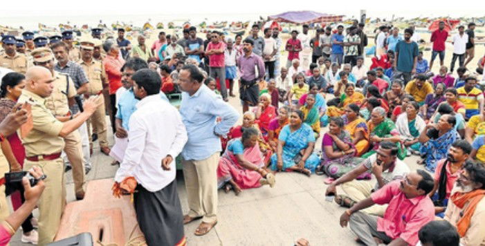Tension is mounting along Chennai’s coastline as fishermen from 12 hamlets between Ayodhya Kuppam in Triplicane and Srinivasapuram in Santhome gear up for a large-scale human chain protest on the evening of March 2.