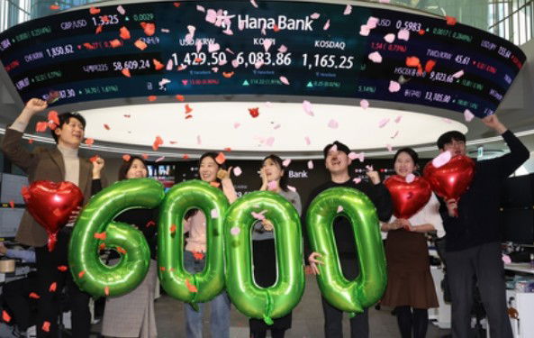 The benchmark Korea Composite Stock Price Index (KOSPI) rose above the 6,000-point level on Wednesday, less than a month after surpassing the 5,000 mark, reports Yonhap news agency.
