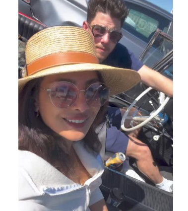 In a video shared by Priyanka on her social media account, the actress was seen chilling and travelling with Nick as he drove their car on a sunny day.