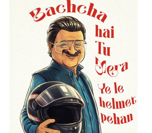 The text overlay read: “Bachcha hai tu mera, ye le helmet pehan”.