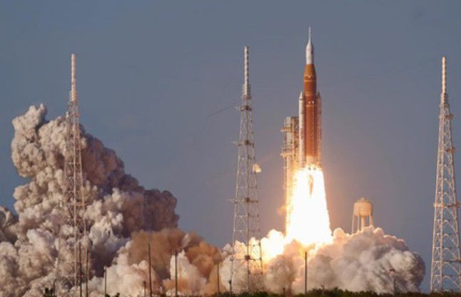 The Space Launch System rocket, with the Orion spacecraft on top, launched from NASA's Kennedy Space Center at 6:35 p.m. (Eastern Time) on Wednesday.